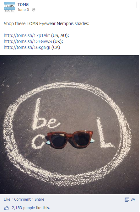 TOMS showed off their product within their messaging, showing (not just telling) their audience how to keep cool.