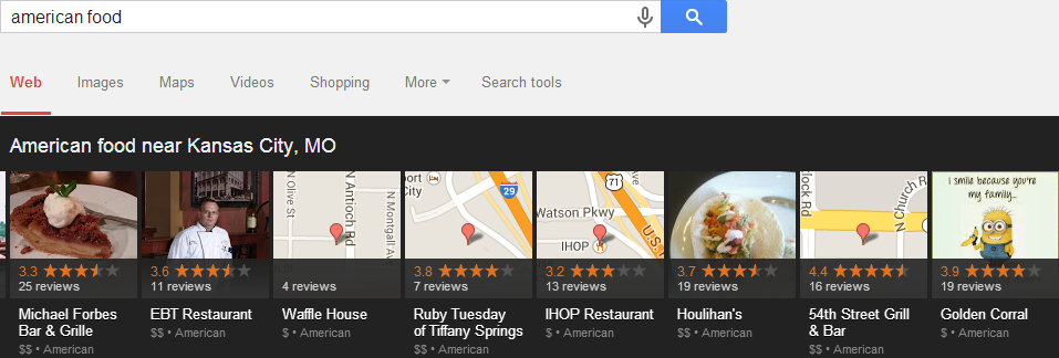 emfluence’s research shows that Google Places receives more overall actions than any other local search platform. However, use of Google Places has been on the decline, while Yelp continues to improve. That’s not to say that Google isn’t still #1, it’s more that consumer behavior has changed. As I pointed out in my 2014 SEO tips post that Google’s Local Carousel is helping satisfy local search needs before the customer needs to click on any particular link. A review on Google+ really matters only to Google (who also uses various other sources for information). A review on Yelp is pulled into Apple Maps, many smaller local sites, and even to Google (to a small extent). So, local search marketers are forced to divide our efforts if we truly want to make a splash online.